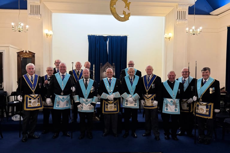 The Installation Ceremony was performed at Lime-stone Rock Lodge on the 13th November 2025. The Installation is a ceremonial event where new leaders take office within a Masonic lodge for the ensuing year and it is a celebration of our history and traditions which date back over two hundred years. The new Master is pictured together with his officers and other Lodge members who enjoyed a superb evening where all enjoyed the camaraderie and cordial atmosphere within the Lodge. Numerous visitors attended the ceremony and the dinner afterwards at the Assembly Rooms on Lowergate in Clitheroe and all members of the Lodge look forward to the forthcoming year with optimism and excitement for the next twelve months.